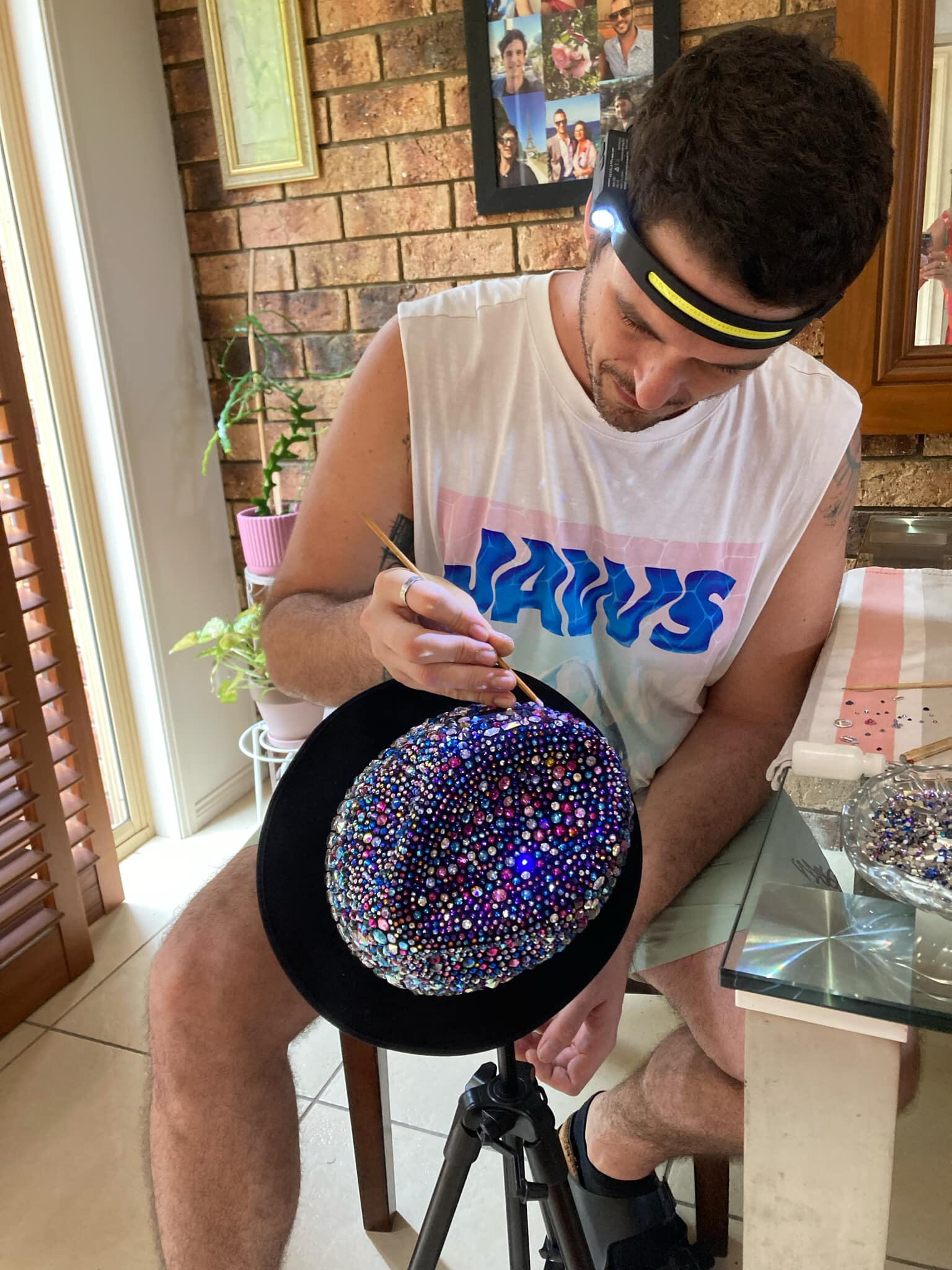 Cameron Barbara is an artist on a mission to follow that creative spark, a mission born from a journey of self-discovery and resilience. His story begins with a childhood immersed in the performing arts where the piano and the theatre stage became his first canvases for self-expression. But life took an unexpected turn, leading him down a challenging path where his artistic spirit lay dormant, overshadowed by struggles, addiction and a draining experience in the world of hospitality.The universe had a plan. A pivotal moment arrived with the passing of his grandmother, a loss that sparked a renewed connection to creativity through the world of jewellery. This was the first glimmer of a calling, a whisper that grew louder with each meticulously crafted piece.Driven by an ambitious spirit, Cameron embraced a bold move to Europe, then back to Sydney, immersing himself in the world of high-end jewellery. But this chapter brought its own trials, culminating in a deep depression that threatened to extinguish his creative flame. Even in the darkest hours though, a resilient spirit persevered.Through the opportunity to become a teacher himself, Cameron discovered not only a passion for guiding others on their creative journeys but also a profound realization: art was not merely a hobby, but a lifeline, a purpose, a way to heal and connect with the world.Through the miracle of IVF - Cameron met his beautiful rainbow child. Meeting her changed something. Meeting her helped save him. It made him realise there was so much beauty inside himself all along. Hidden by trauma and fear.This realization ignited a creative explosion. Rhinestones became his paint, hats and colours his chosen mediums. With each shimmering creation, a unique style emerged – "Dragon Skin" textures, vibrant colours, and intricate designs that captured the essence of mythical creatures and the beauty of the natural world. Though his journey with visual art has just begun, Cameron approaches it with a newfound confidence and clarity. He knows this is where he belongs, expressing himself through shimmering textures and dazzling designs.His rhinestone-encrusted hats, like the dazzling "Electricity" and the mesmerizing "H&T," are not just accessories; they're wearable masterpieces, results of the transformative power of self-expression. His vibrant wall art, with its textured surfaces and captivating colours, invites you to step into a world of imagination and wonder. Asking... what do we really treasure?Cameron's story is a reminder that even in the face of adversity, the creative spirit can flourish. "You can transmute your trauma into treasure too, by channelling your energy into the act of creation." The message is clear. Embrace your passions, explore your potential, and discover the transformative power of art.